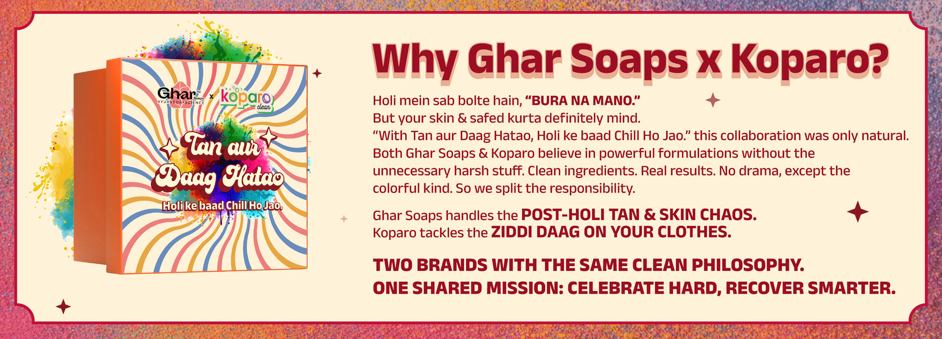 Ghar Soaps, in collaboration with Koparo, won’t let colours stay on your skin or clothes for long.