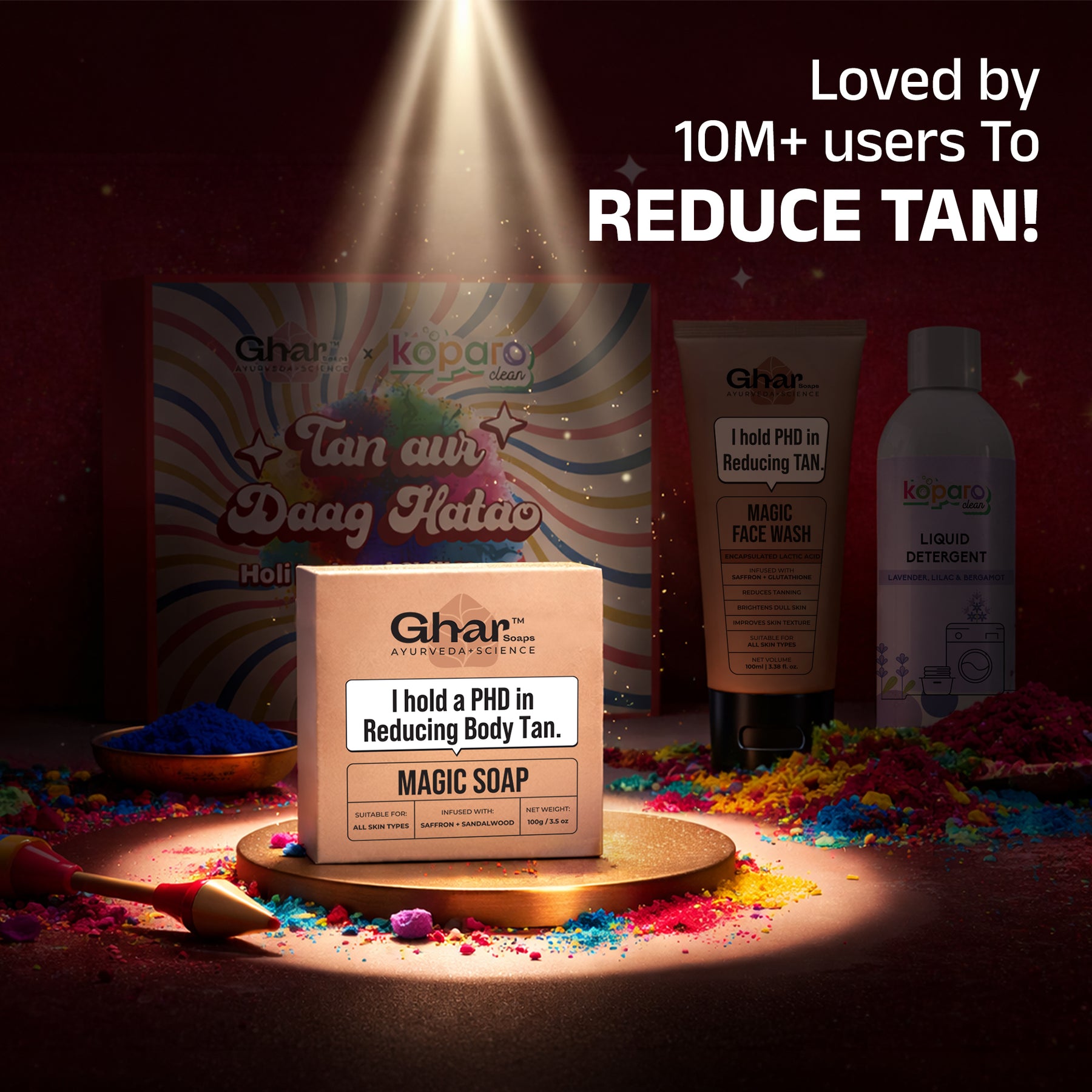 Yes. The Magic Soap and Magic Face Wash help cleanse deeply while gently exfoliating the skin, it helps remove Holi colour residue.